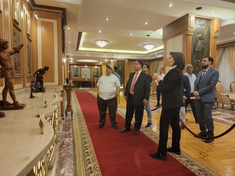 قام نائب مدير مكتب رئيس الجمهورية للشؤون الاقتصادية – رئيس الاتحاد اليمني لكرة القدم الشيخ أحمد صالح العيسي أمس بزيارة استطلاعية إلى نادي ضباط القوات المسلحة المصرية بالزمالك ( جولي الزمالك) تخللها زيارة للمتحف ومكتبة النادي التاريخيين.