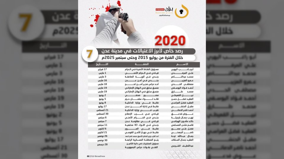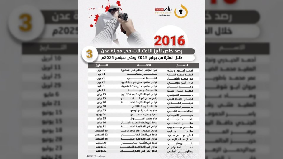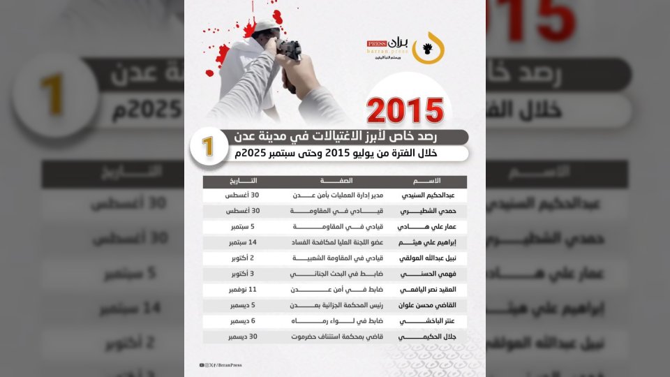 قائمة جرائم الاغتيال منذ يوليو 2015 حتى سبتمبر 2025م