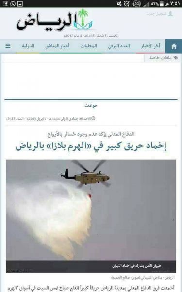 وكان ناشطون تداولوا على مواقع التواصل الاجتماعي صورة لطائرة مروحية زعموا انها تابعة لسلاح الجو الاماراتي وهي تقوم برش الماء على المتظاهرين في ساحة العروض بعدن فيما الطائرة تابعة للدفاع المدني السعودي وهي تقوم بإخماد حريق في أحد الأسوق في المملكة العربية السعودية.