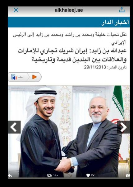 ونشر تغريدة اخرى عن تقرير يتحدث عن العلاقات التجارية الإماراتية الإيرانية